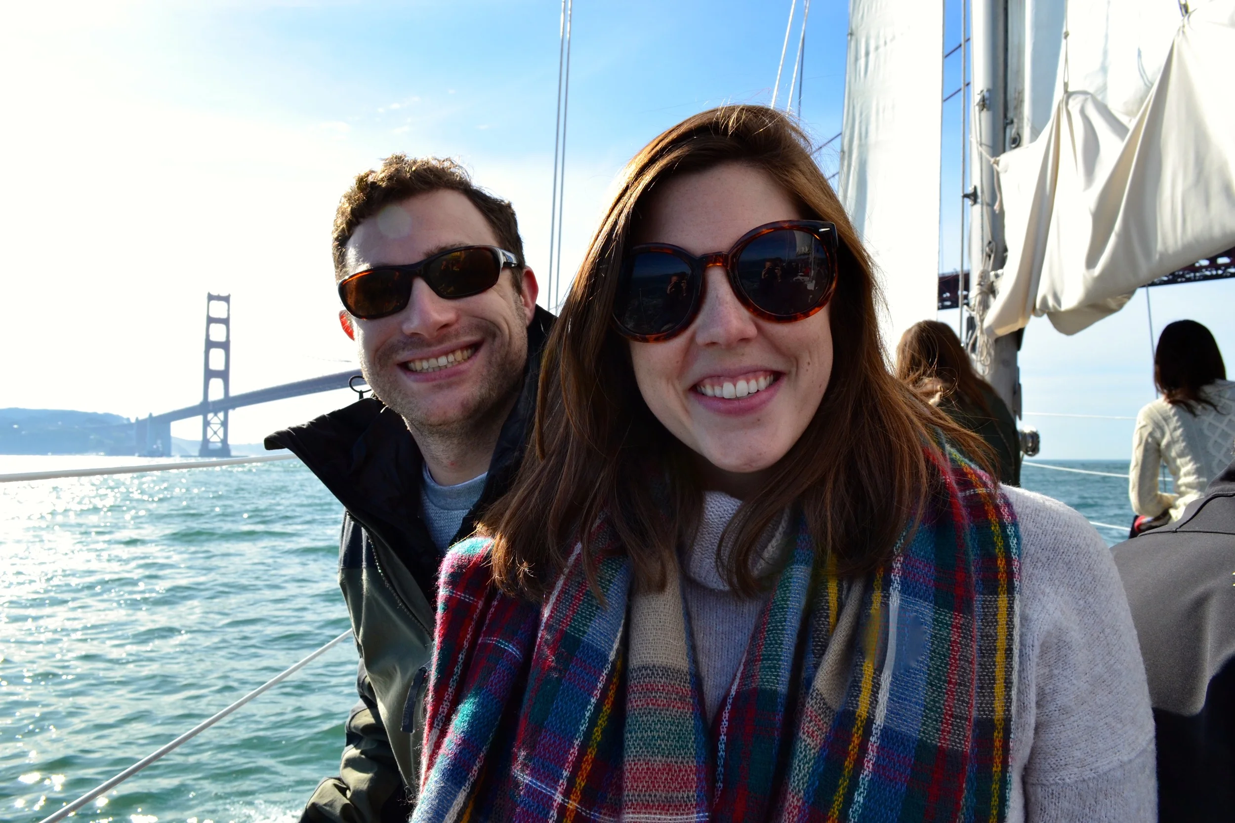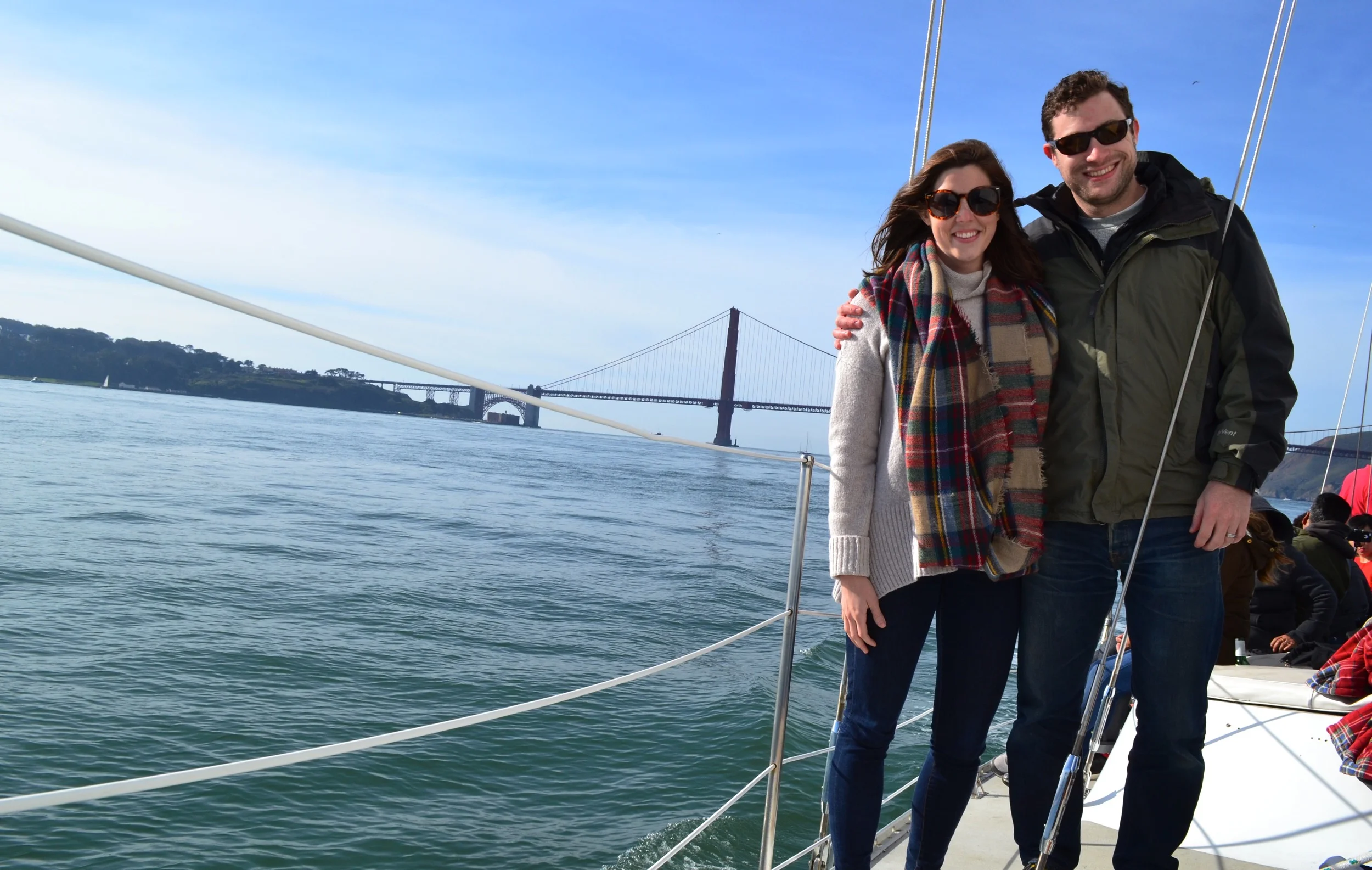 A couple weeks before Christmas we crossed another thing off of our 16 in 16 list. And it was sailing the Bay and under the Golden Gate Bridge. This was the last thing we got to on the list which we didn’t finish, more on that later. And, it was kind of the perfect way to cap off the year. Not to mention a little bit fortuitous, as we’d find out a couple weeks later that we’d be moving back to NC. Without knowing it, it was kind of a farewell to the city and it was really perfect. It had been really rainy and cold for weeks before that. We actually had the tour scheduled for the weekend before, but it was too rainy and we had to reschedule. I was fully prepared for piercing cold and wind, but the day turned out to be SO beautiful. We got really lucky. Take a look!
