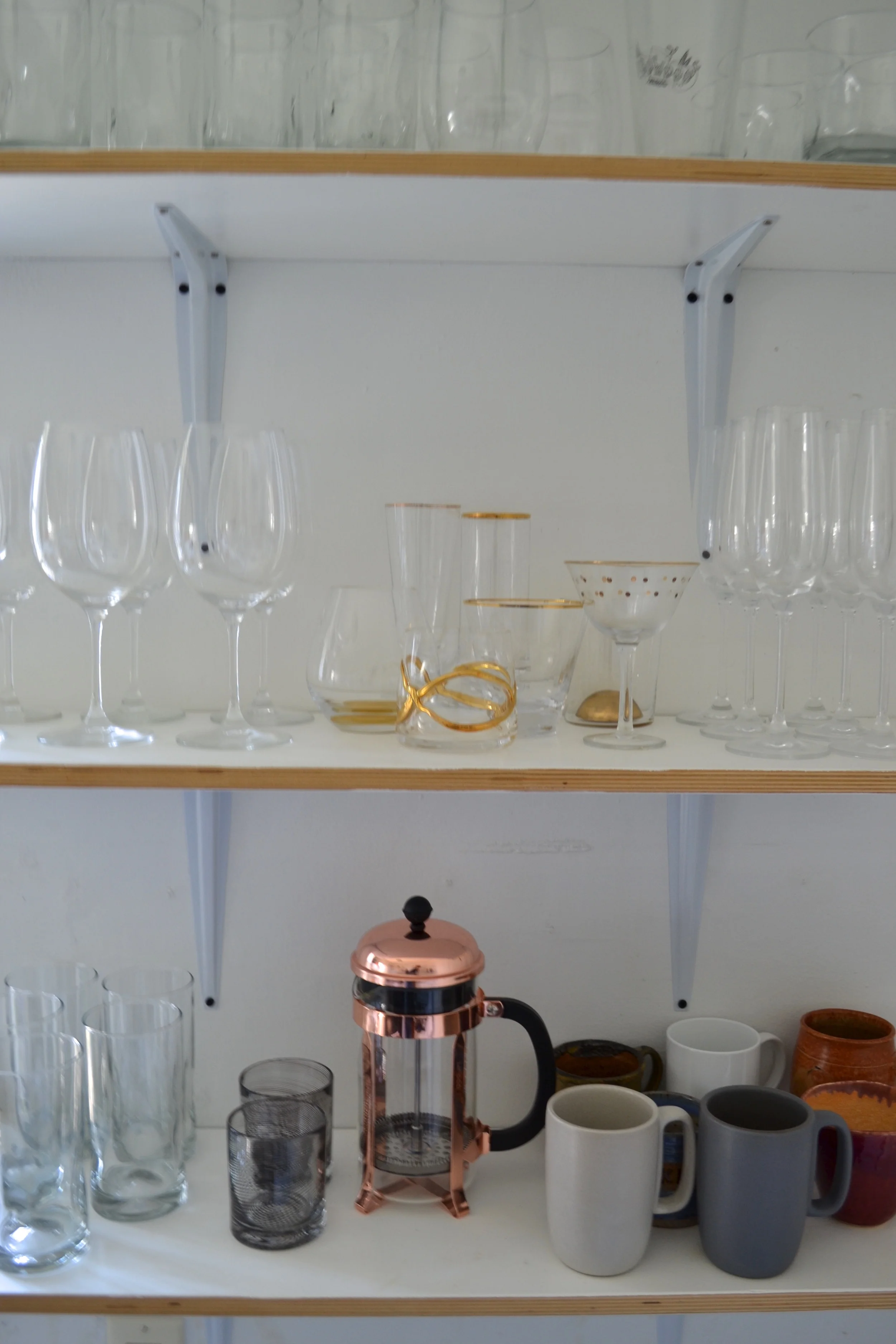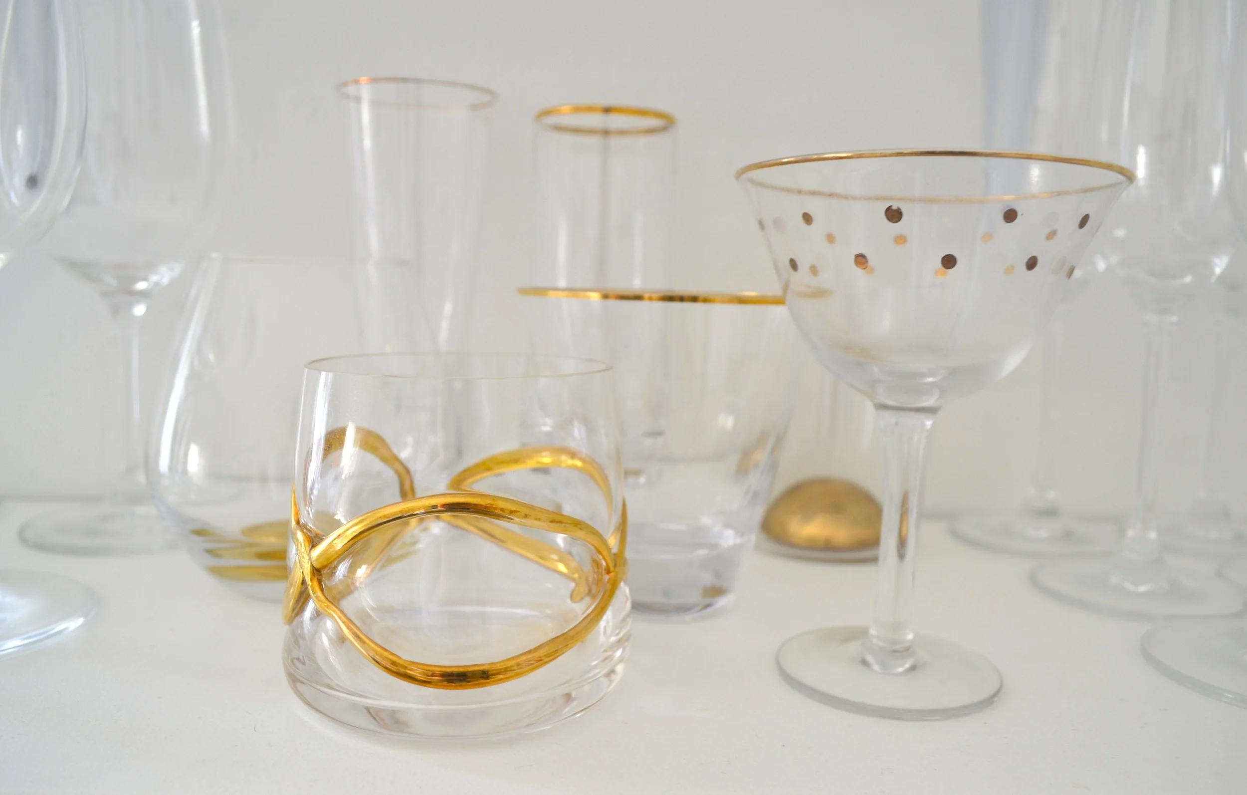 I’ve been collecting these gold accented cocktail glasses for the last couple years and I’m a big fan of the variety. It makes it especially easy to know which glass belongs to which person during a party. And there’s something a little bit special about getting to pick out your own glasses. Any of these would be perfect for my Gold Rush, this Clementine Vodka Soda (I made them with mandarins and they were AMAZING), or these Coconut Blood Orange Margaritas. Now, get mixing if for no other than it’s Friday!
