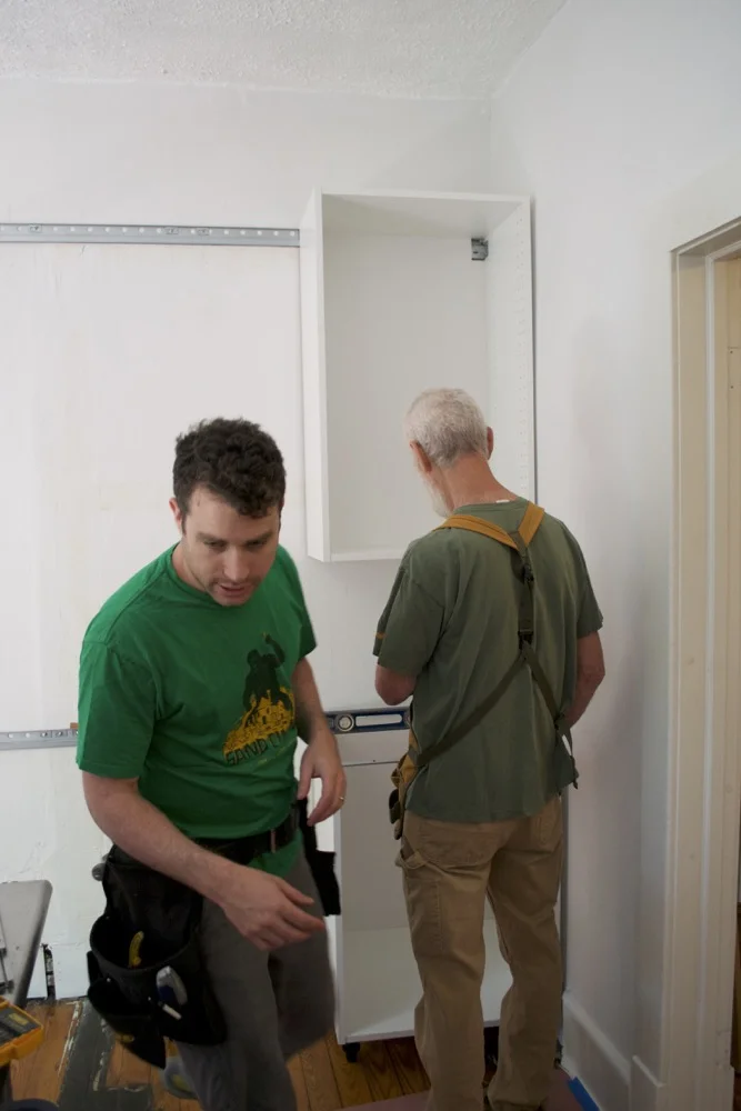 The priming and painting alone made a huge difference in the kitchen, but if you follow me on Instagram then you probably saw that we started putting up cabinets and that’s made an even bigger impact. In our timeline we allotted about a month for this process because we’ve heard what a nightmare putting together Ikea cabinets can be. But, we actually got all of the boxes built and many of them installed in one weekend. We were lucky to have our in-laws come over for a day to help, having the extra hands definitely played a part in being able to get things done so quickly. We’re currently problem-solving some hiccups we encountered because of uneven walls and floors so we’re not quite done. Plus, we still have all the drawers and cabinet fronts to build and install. We’re waiting to do those until the counters and appliances are in so we don’t risk damaging them and we don’t have to do any extra cleaning. For now we’ll continue living in an Ikea satellite store. {EMOJI} But, really, getting all the cabinet boxes put together has significantly reduced the clutter, which I’m so happy about. It’s starting to feel like I’m getting my house back.
